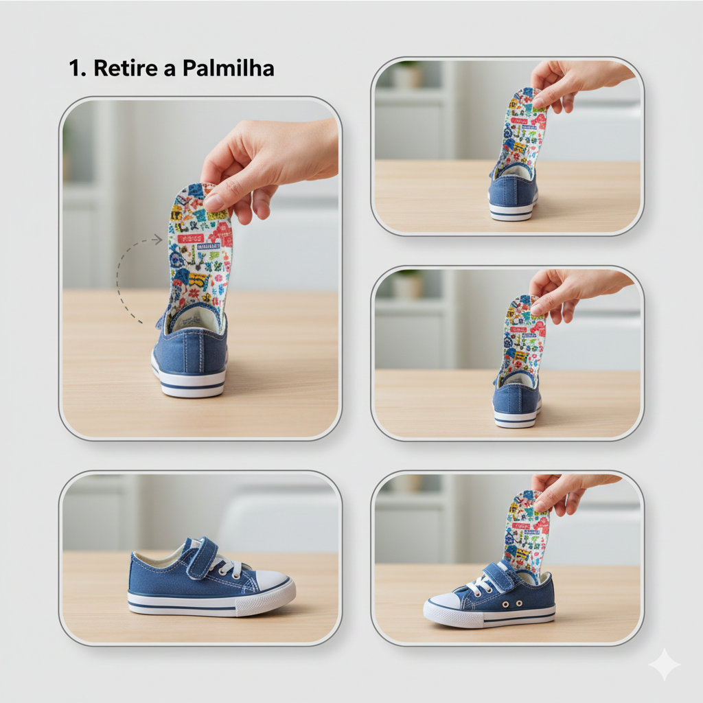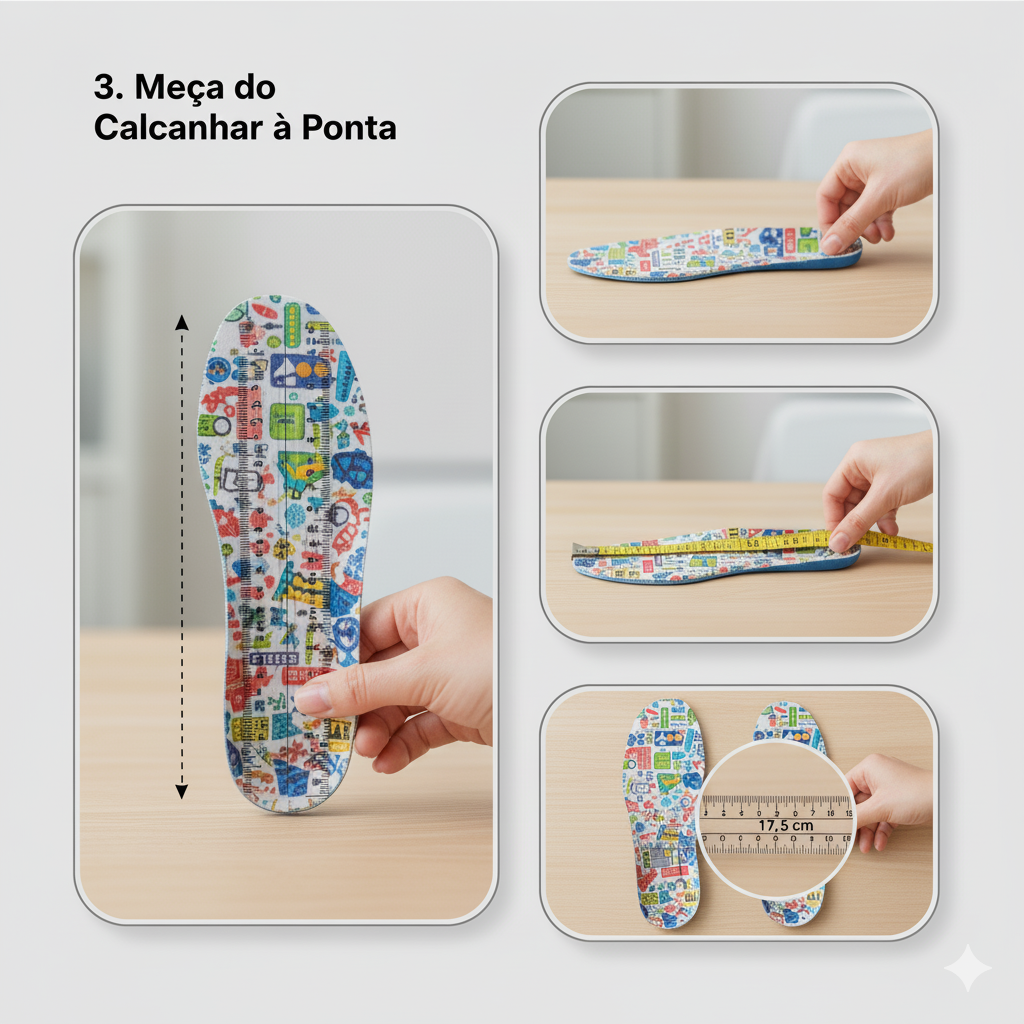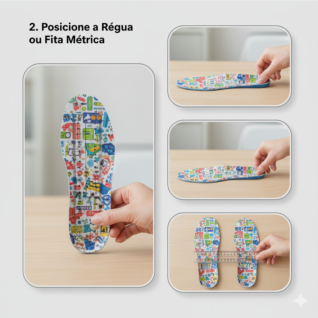 Se possível, remova a palmilha interna de um calçado que seu filho(a) já usa e que esteja confortável.